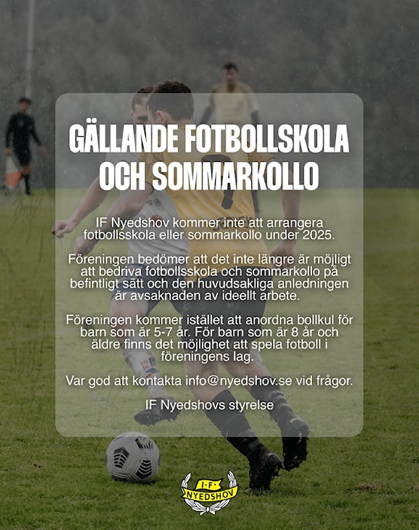 IF Nyedshov kommer inte anordna fotbollsskolan eller sommarkollo under 2025.